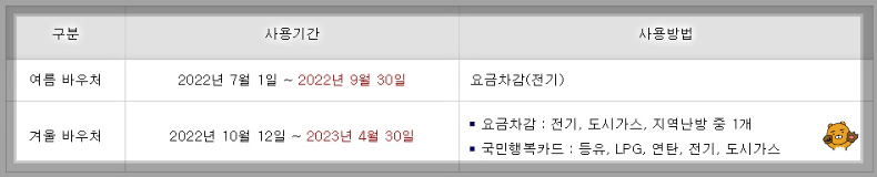 ※ 겨울 지원금액 일부를 여름으로 당겨 쓰는 것도 가능합니다(단, 별도 신청 필요, 최대 45,000원까지 가능)