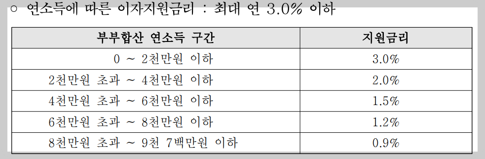 - 이자지원금리 : 최대 연 3.65% 이하 (추가 이자지원 금리 포함)