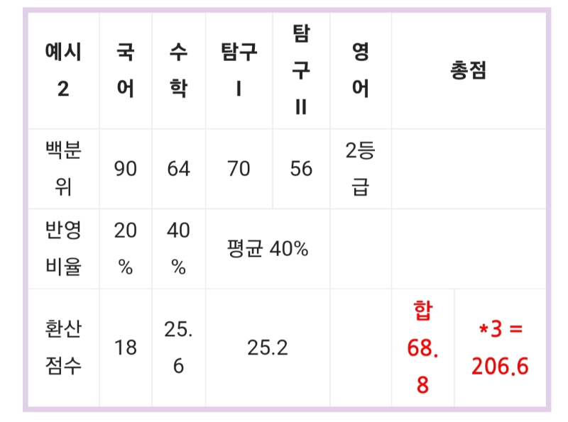 - 환산점수 총합 = 68.8 * 3 = 206.6